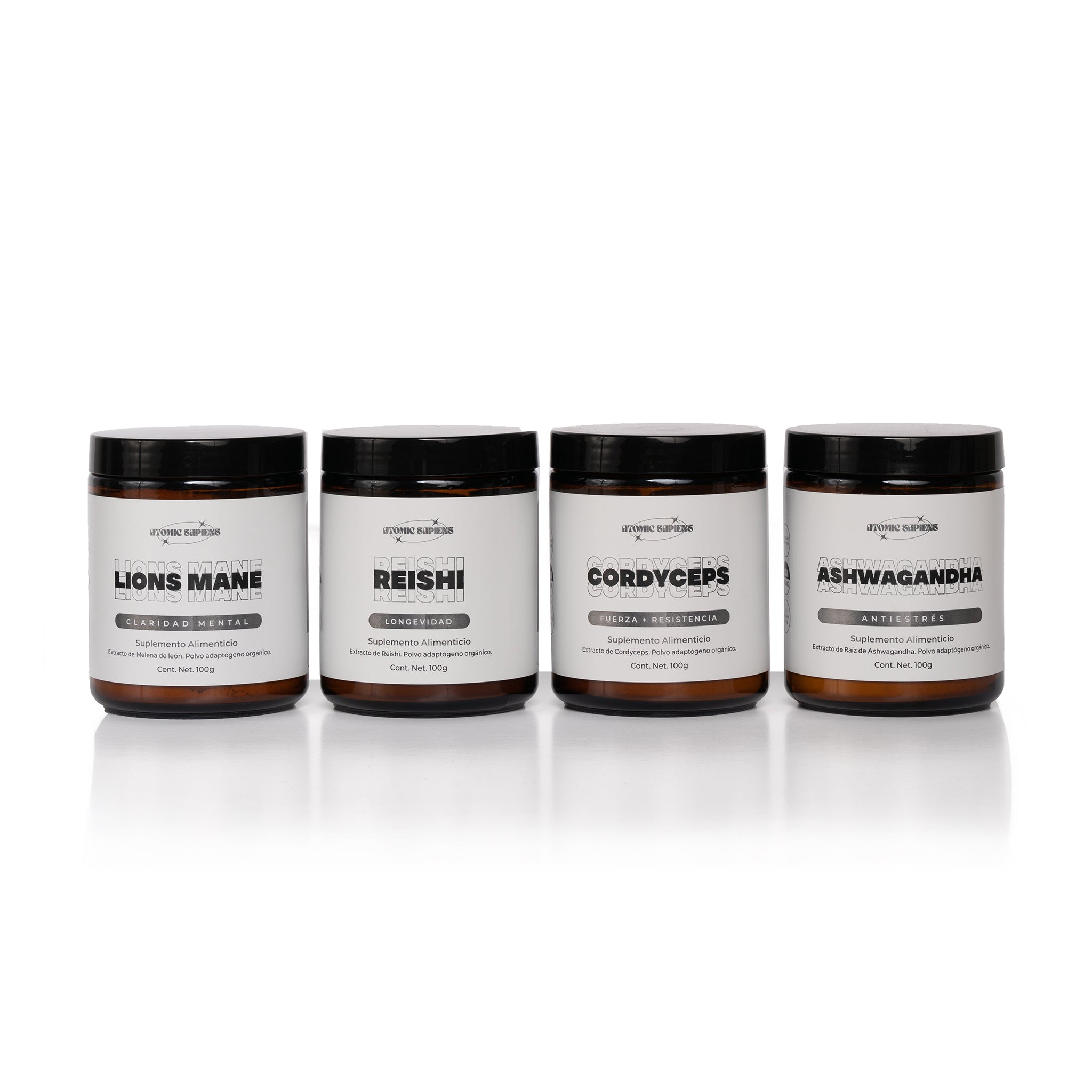 Los cuatro adaptógenos más poderosos y estudiados del mundo, reunidos en un solo kit. Diseñado para que todos los sistemas de tu cuerpo funcionen en su máximo estado: equilibrio, energía y claridad mental.